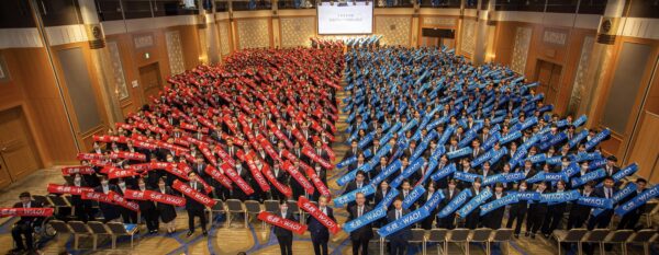 式典では、地元名古屋にゆかりのある著名人や、先輩社員からのメッセージビデオなどが投影され、新入社員の背中を力強く押してくれる温かな時間となりました。